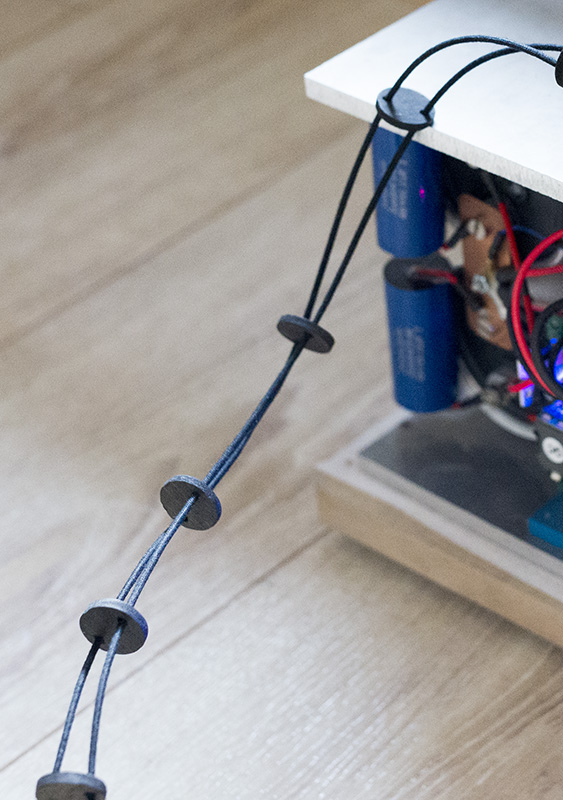 A flat silver ribbon wrapped in silk and impregnated in oil.